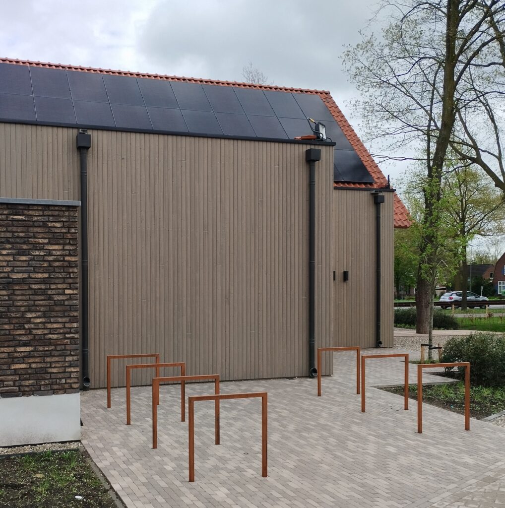 Bij het in februari heropende restaurant “Nieuw Schaijk” cortenstalen fietsenrekken geplaatst